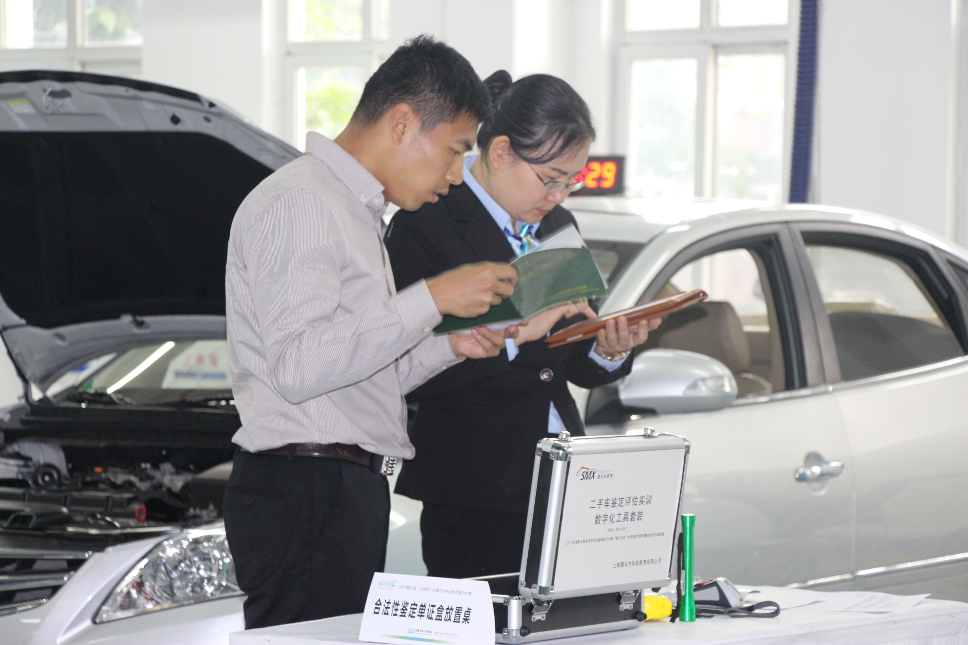2.预赛:预赛分为三个项目:第一项目为“二手车营销基本能力考核”,以真实工作场景为背景,在实车与智能服务终端上操作进行;第二项目为“服务接待综合能力演练”,在真实工作情境中进行;第三项目为“信息化教学”,需参赛教师根据选拔赛提交的微课进行说课。
